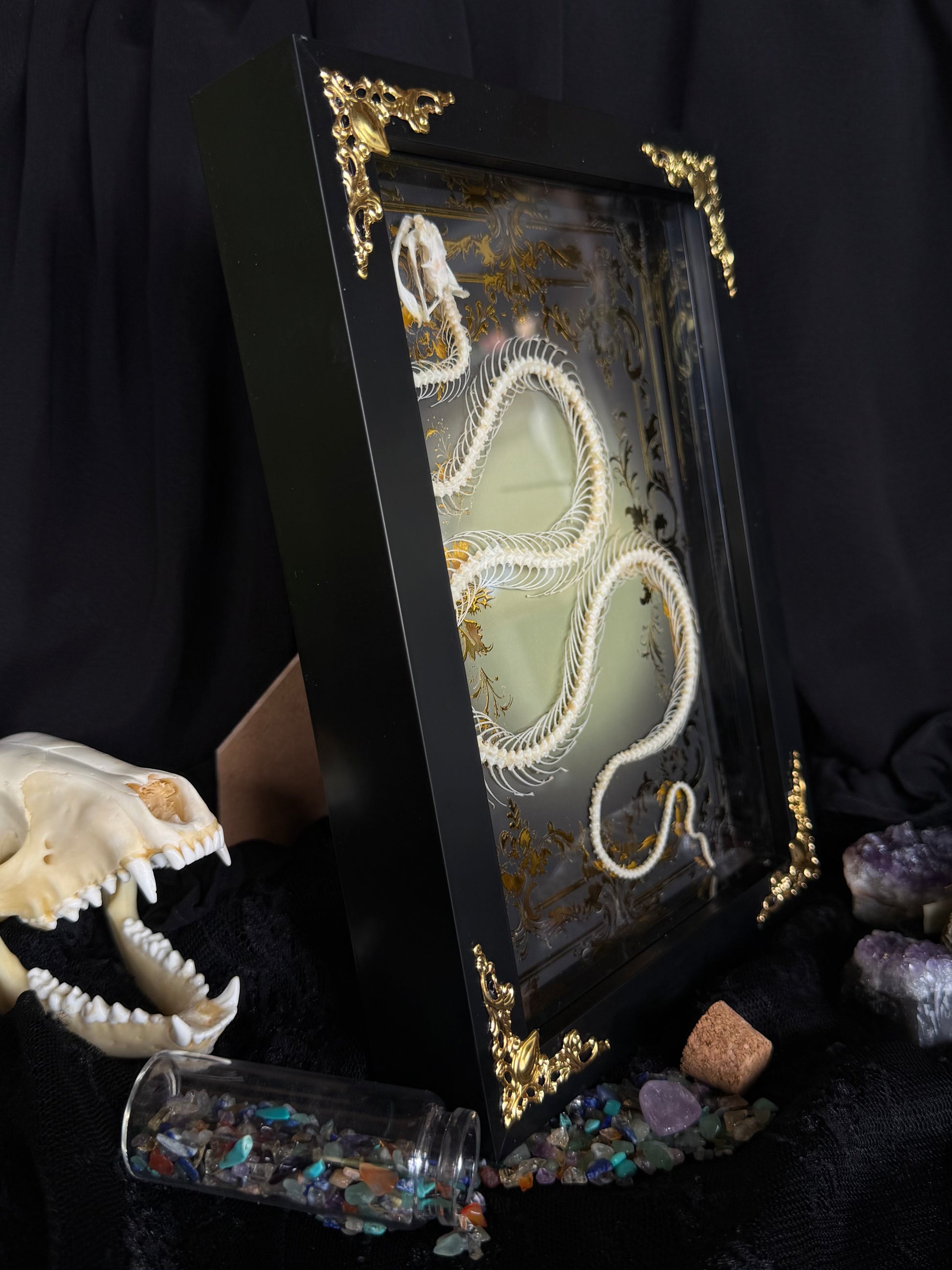 White-lipped Pit Viper Snake Skeleton-Trimeresurus albolabris Framed specimen