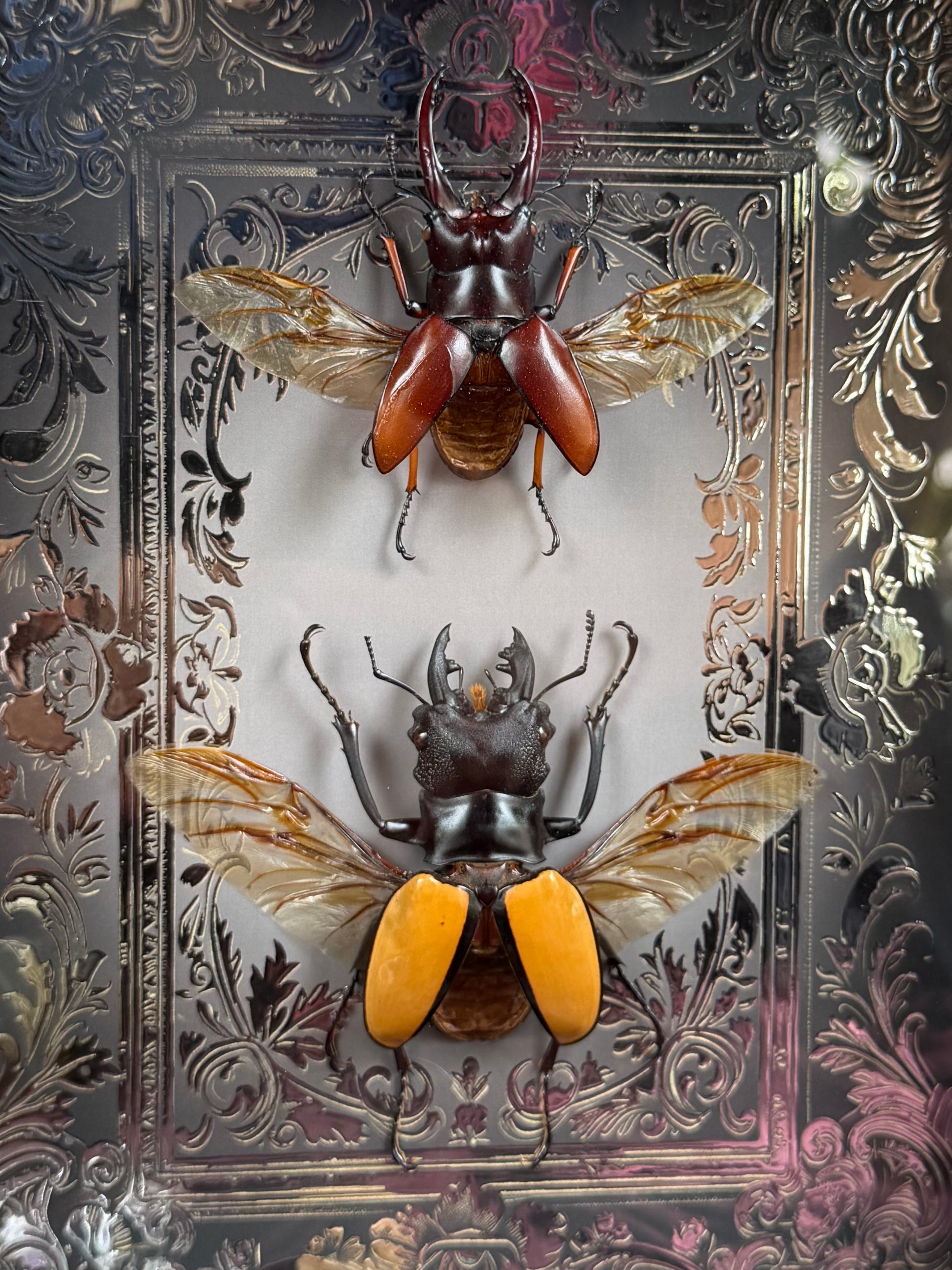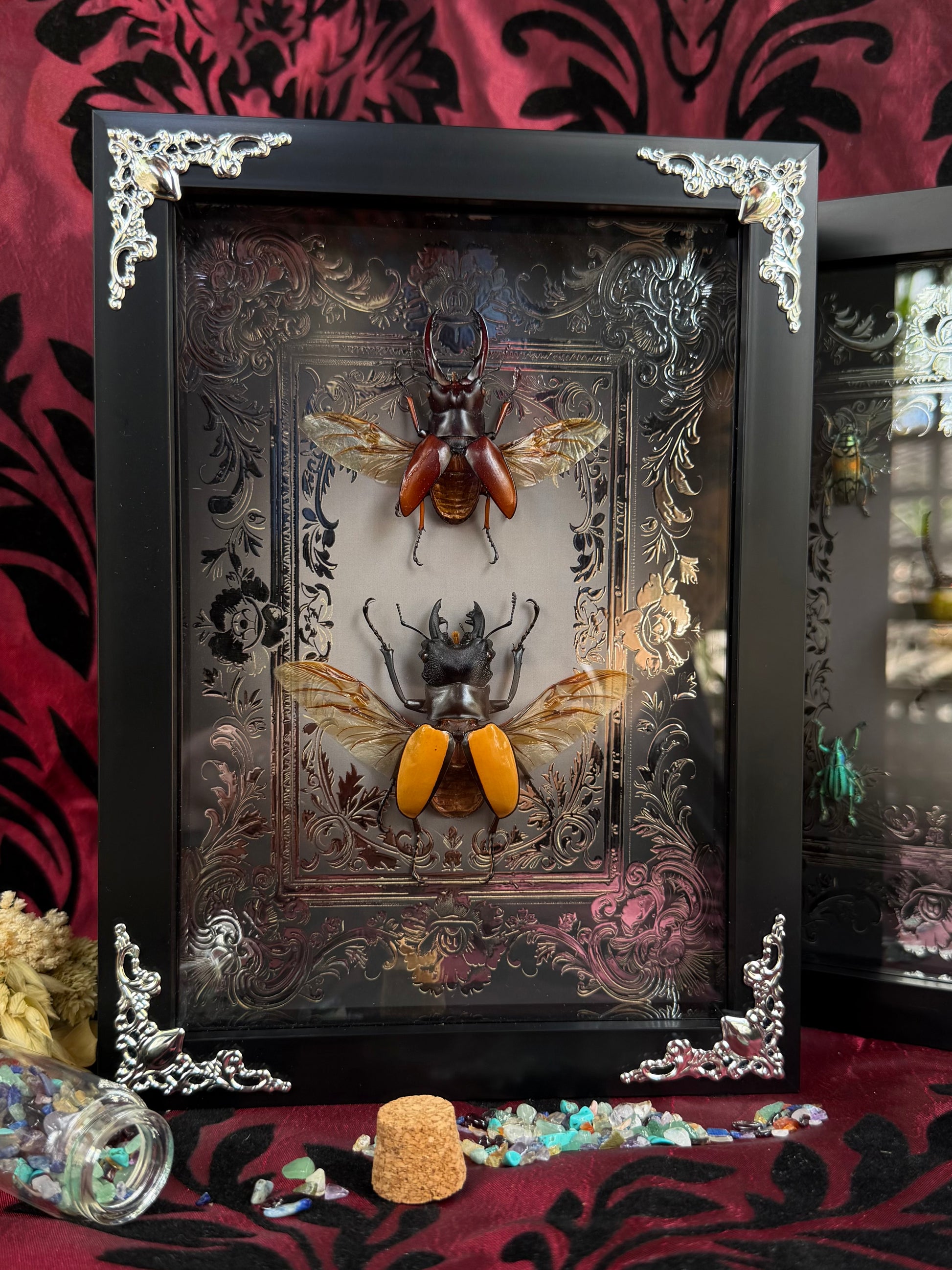Stag Beetle Duo Framed Specimens (SILVER) - names in description