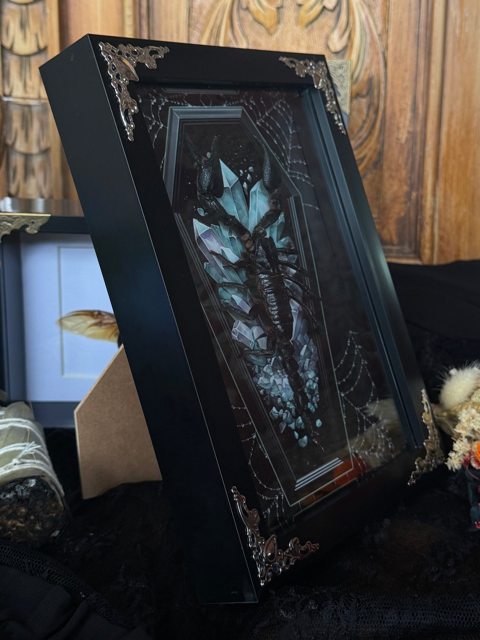 Forest Scorpion - Genus Heterometrus Frames Specimen (BLUE COFFIN)