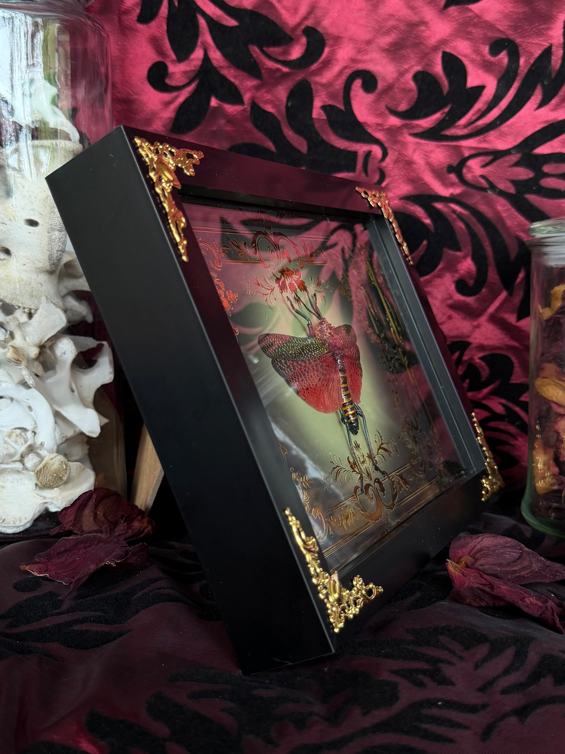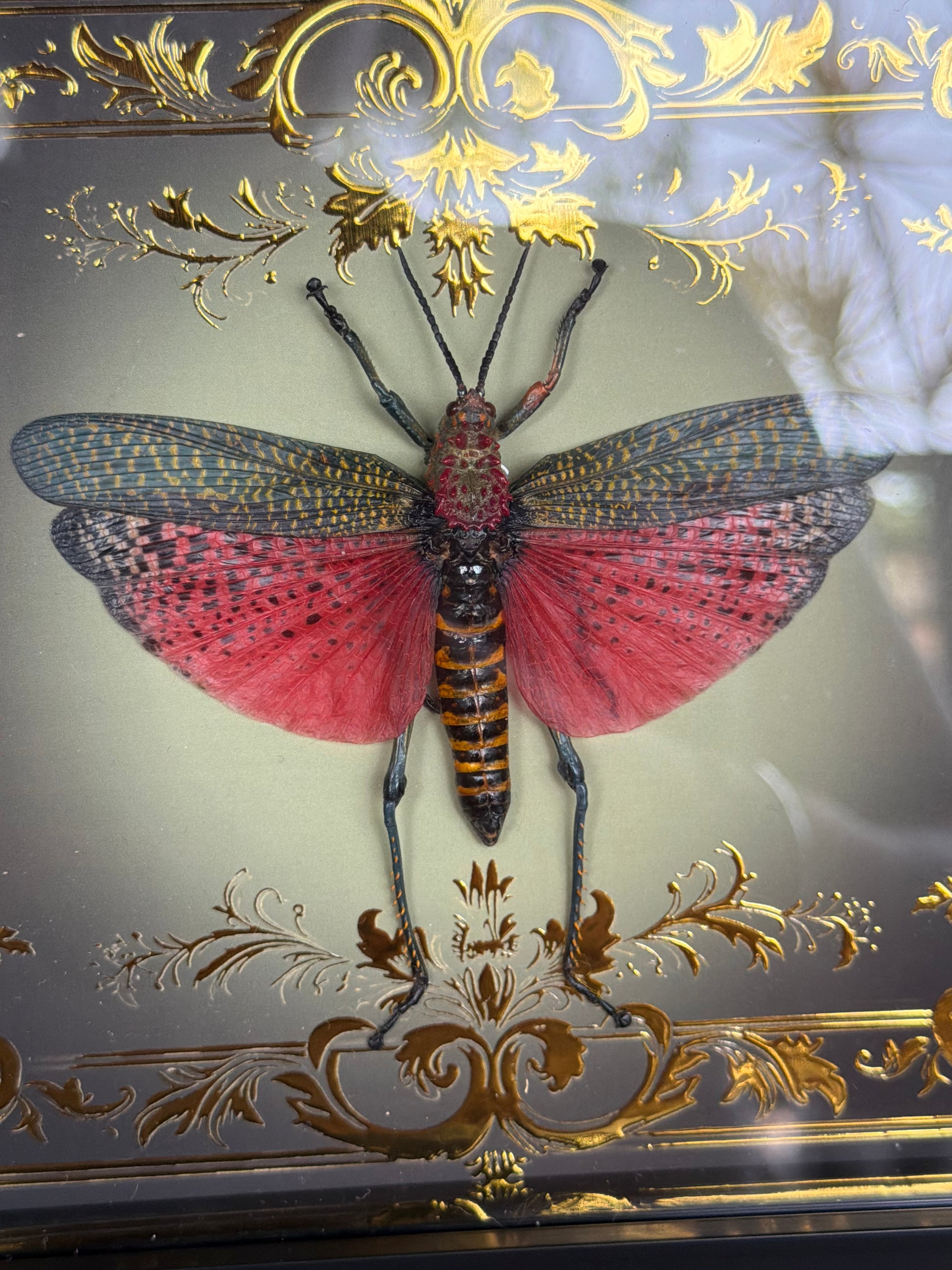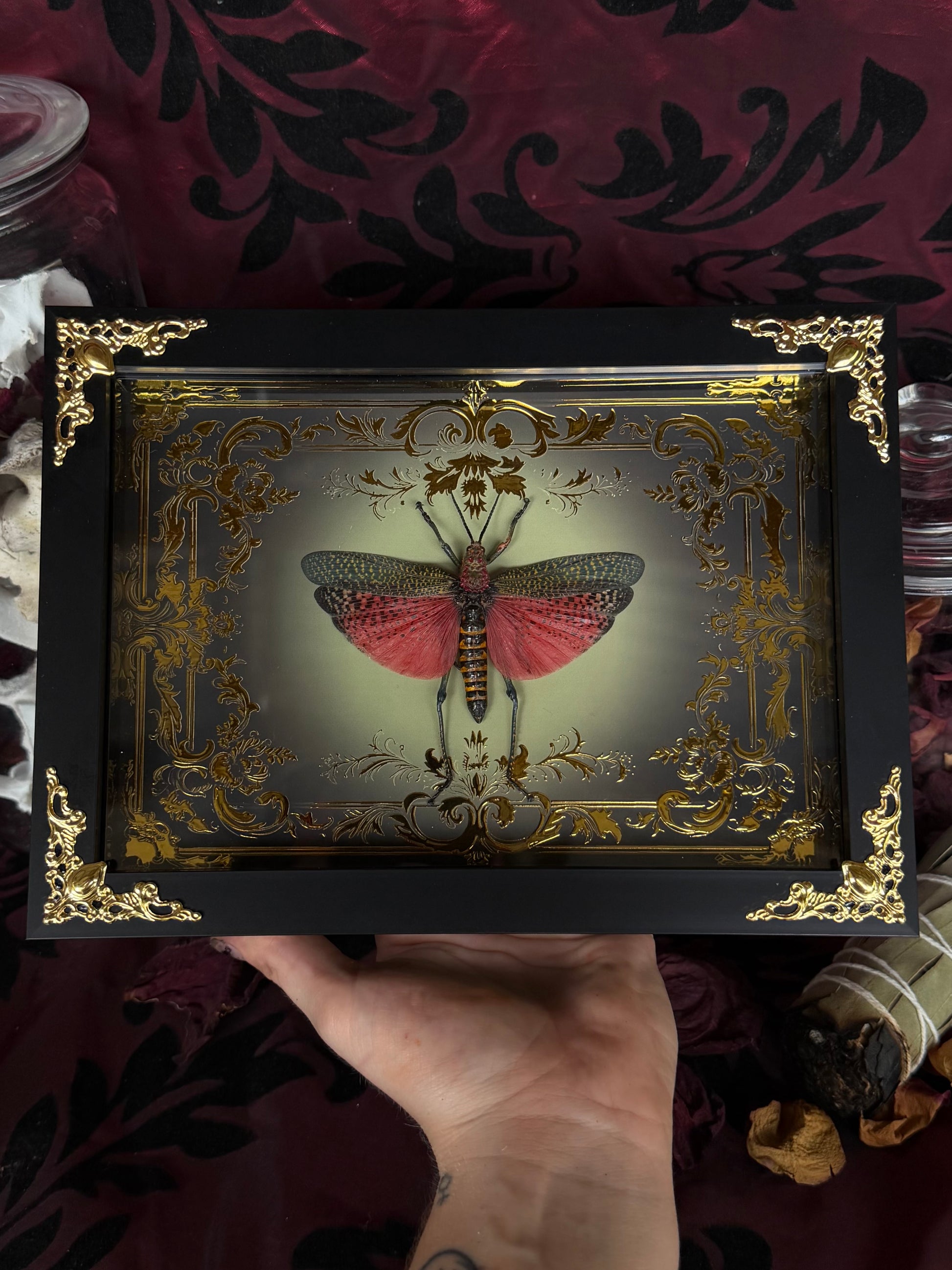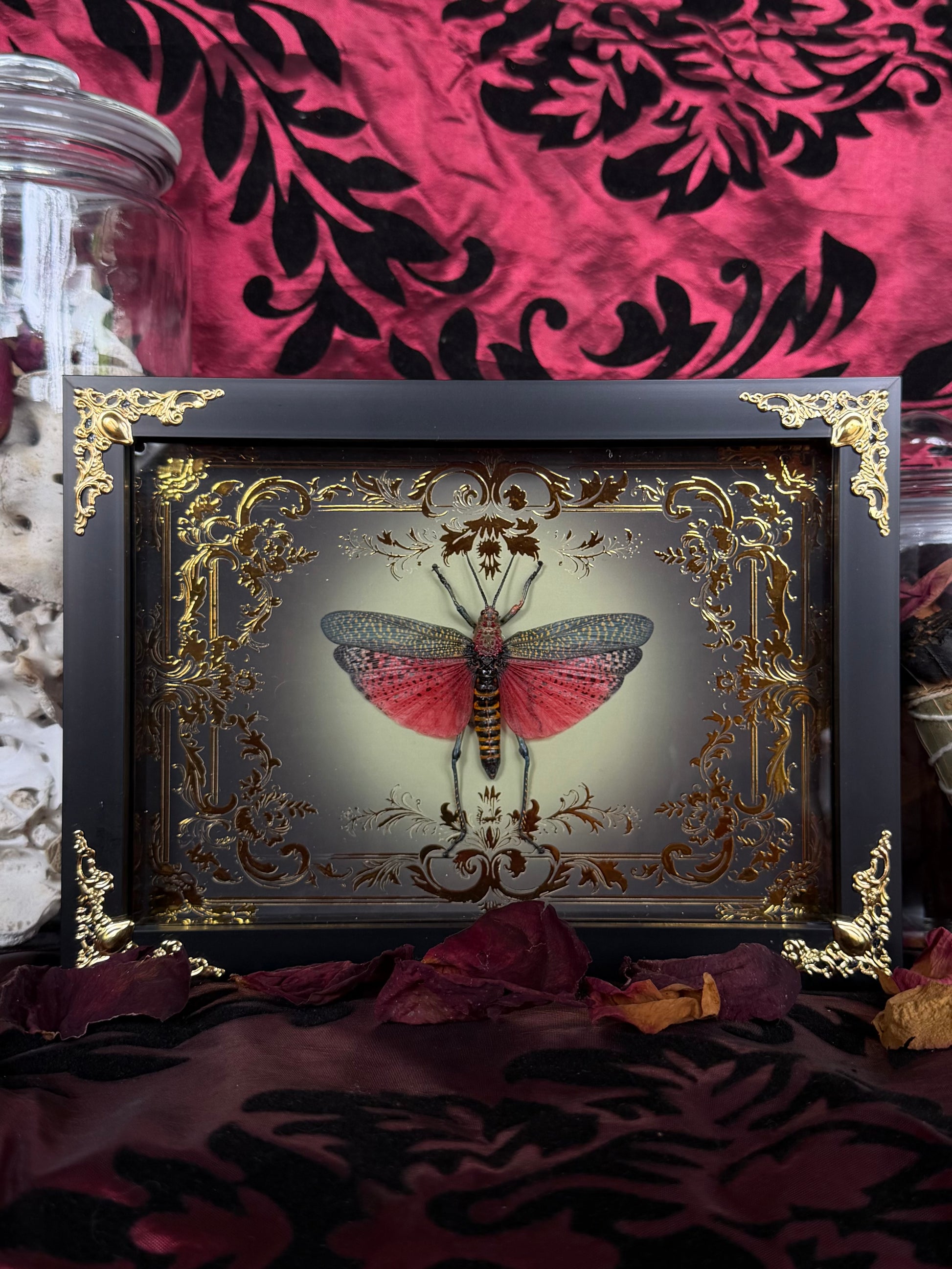Rainbow Milkweed Locust Phymateus saxosus madagascariensis Tulear Framed Specimen (GOLD)