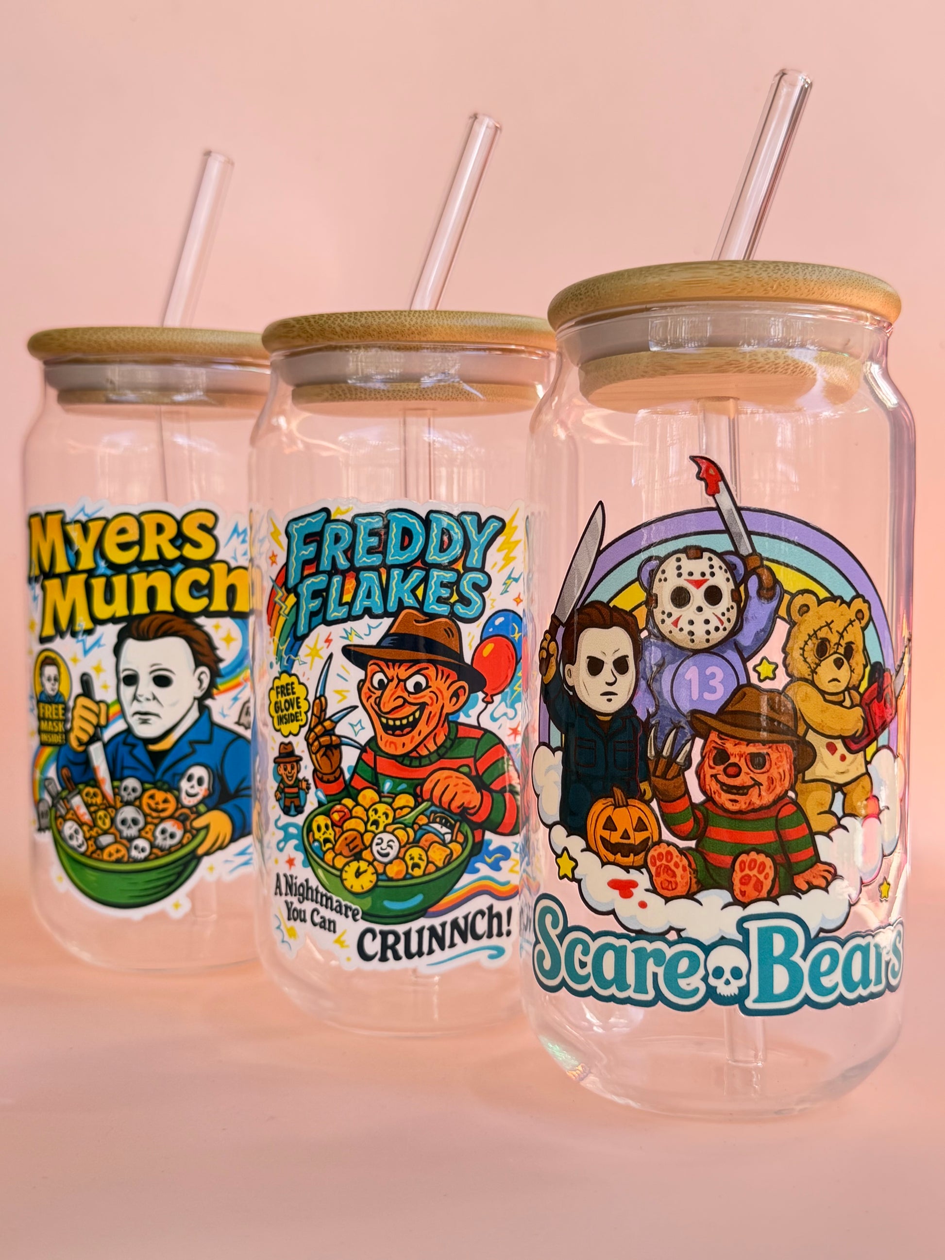 SCARE BEARS- Glass Latte Drink Cup