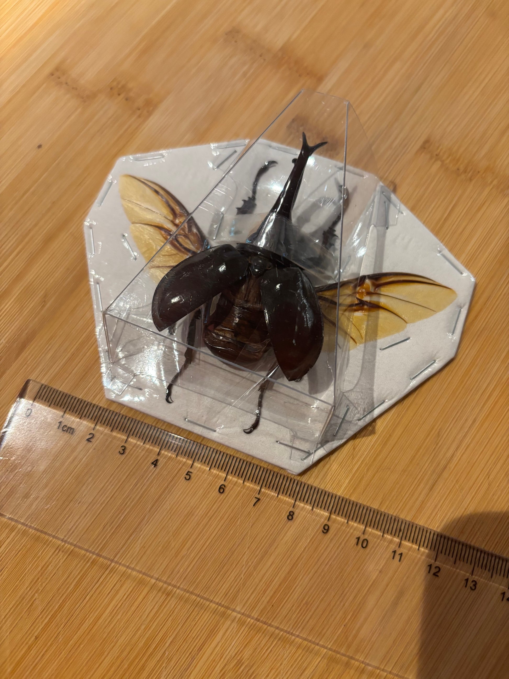 BROWN RHINO BEETLE - Xylotrupes gideon spread specimen