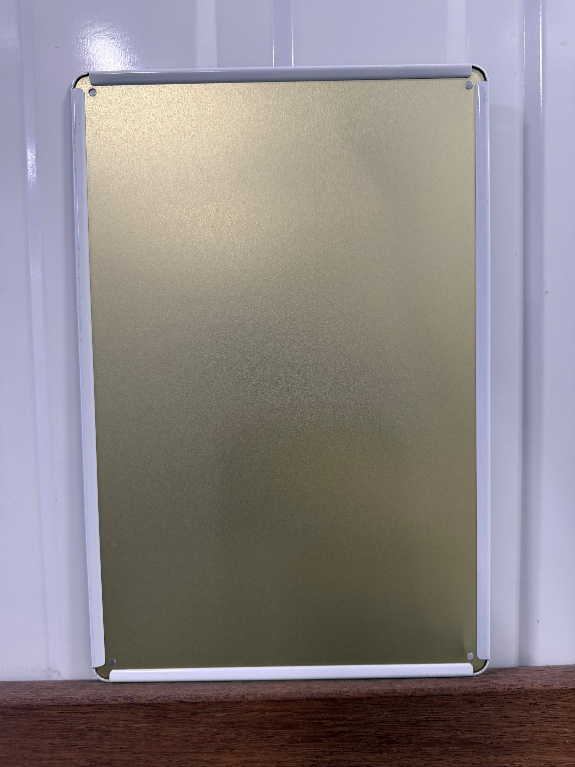 21 x 29 cm (A4 size) enamel coated tin with curled and pressed edges for safety. Our tin signs are pre-drilled with a hole in each corner - ready to mount. Alternatively, a string can be added to the top 2 holes for easy hanging.